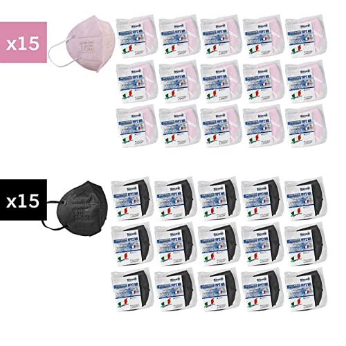 30 Mascherine FFP2 Certificate CE Colorate ROSA e NERE (15 + 15) Made in Italy SICURA Italia BFE ≥99% Mascherina ffp2 SANIFICATA e sigillata singolarmente