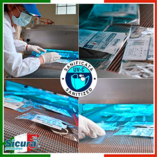 SANIFICAZIONE TUNNEL Protection: ogni lato della mascherina è sottoposto ad un processo di sanificazione con raggi UV-C per l'abbattimento della carica batterica.
