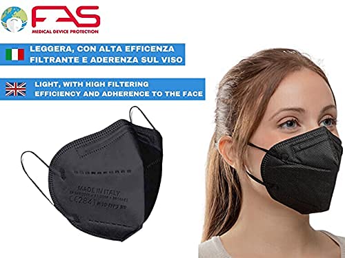 MASCHERINE FFP2- CERTIFICATE CE MADE IN ITALY- EFFICACIA DI FILTRARE I BATTERI (BFE) SUPERIORE AL 95% - SIGILLATE SINGOLARMENTE- BIANCHE O NERE- CONFEZIONI DA 25 o 50 PEZZI (50, NERO)