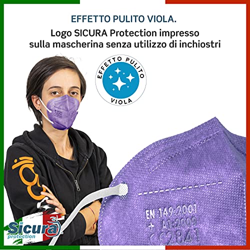 30 Mascherine FFP2 Certificate Taglia Piccola Small Size VIOLA Made in Italy CE SICURA BFE ≥99% | PFE ≥94% Mascherina per viso piccolo sigillata singolarmente - 14x9cm CERTIFICATA filtrazione FFP2