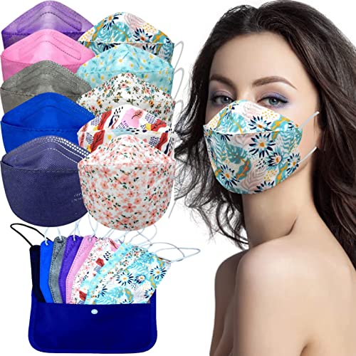 通用 MVT - Mascherine FFP2 Colorate, Confezione da 20 Pezzi FFP2 NR Mascherine di Colori Stampate Filtrante 5 Strati Forma 3D Tipo Pesce +1 Custodia Porta Mascherine Colore Casuale