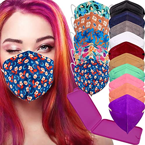 通用 MVT - Mascherine FFP2 Colorate, Confezione da 20 Pezzi FFP2 NR Mascherine di Colori Stampate Filtrante 5 Strati +1 Custodia Porta Mascherine Colore Casuale