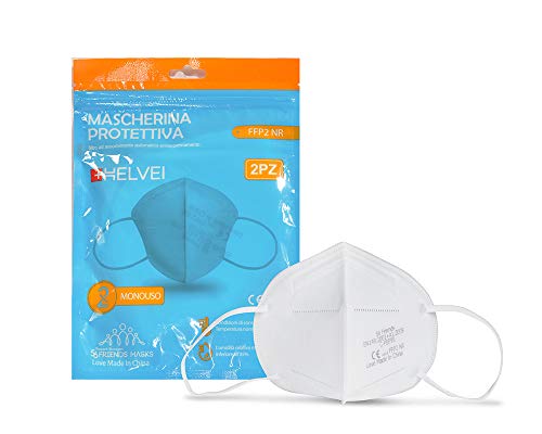 2 Mascherine Protettive FFP2 Helvei Certificate CE. 5 Strati. BFE ≥95%