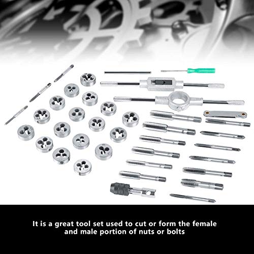 [Perfect Set]: 40 pezzi di set di maschiatori e filiere viene fornito in una custodia di plastica organizzata. Ideale per rifilare elementi di fissaggio e fori di fissaggio per la riparazione di auto e macchinari. Tutti i maschi e le filiere sono chiaramente contrassegnati con le dimensioni per una facile e rapida individuazione