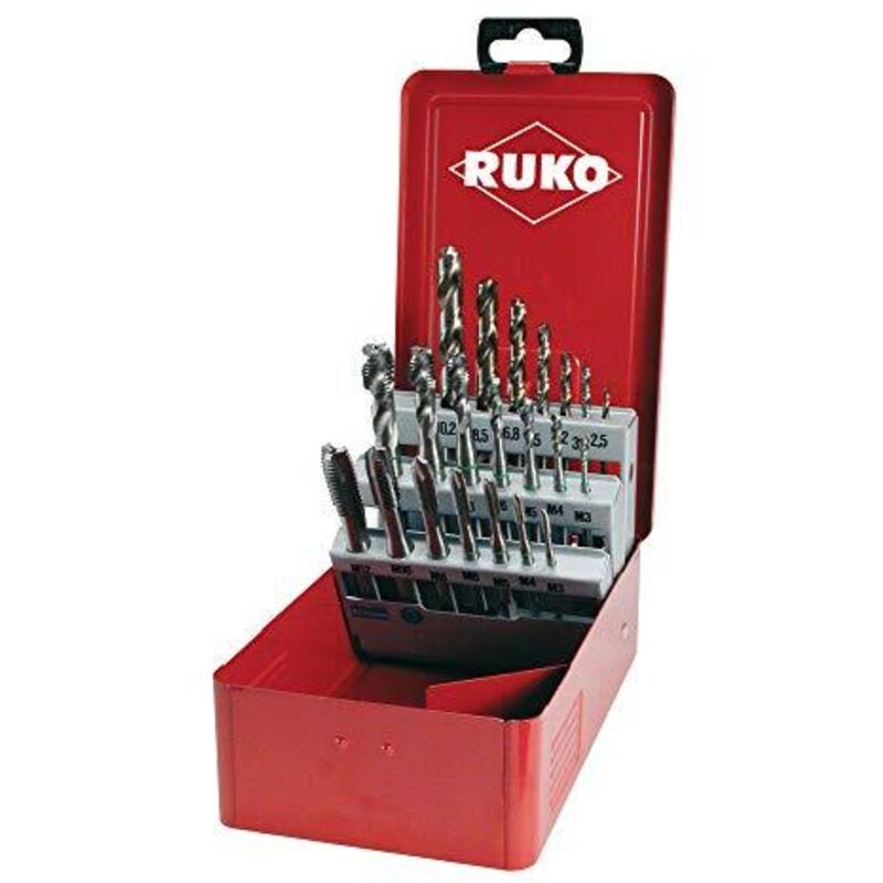M3 - M12 composto da: 1 pezzo MGB forma B ciascuno con sezione peeling DIN 371 M3/ M4/ M5/ M6/ M8/ M10 DIN 376 M12 per 1 pezzo MGB forma C 35° RSP DIN 371 M3/ M 4/ M5/ M6/ M8/ M10 DIN 376 M12 per trapano a spirale da 1 pezzo 2,5/ 3,3/ 4,2/ 5,0/ 6,8/ 8,5/ 10,2 mm Ulteriori caratteristiche tecniche: · Contenuto: 21 parti · Versione: Formulario B - con sezione peeling / forma C 35° RSP · Norma: DIN 371/376 · Materiale da taglio: HSS-Co5