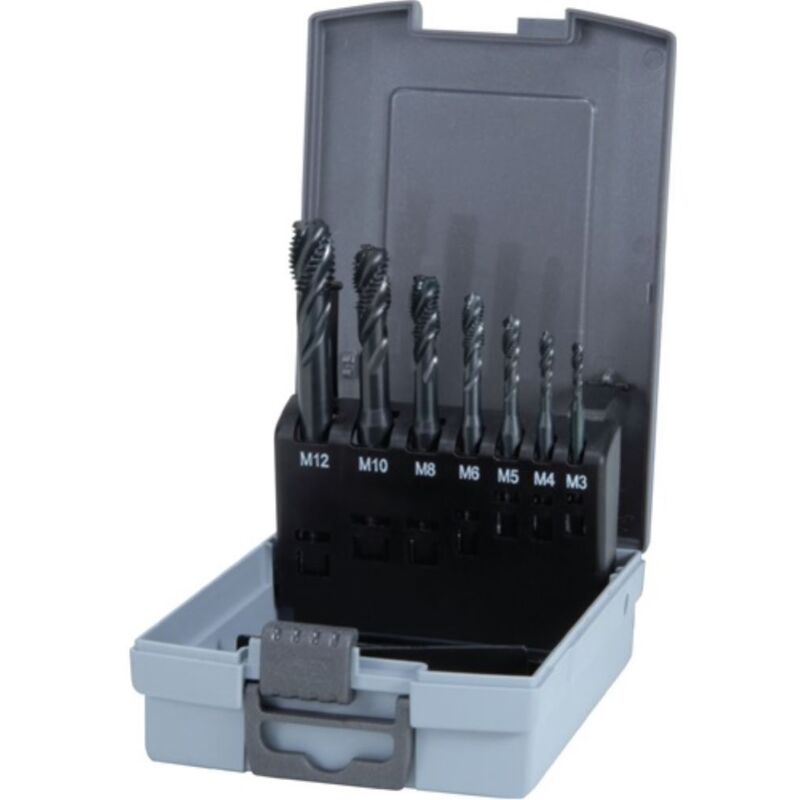 HSS-Co5-VAP · M3 - M12 disponibile: 1 pezzo mgb DIN 371 M3/ M4/ M5/ M6/ M8/ M10 DIN 376 M12 Altre caratteristiche tecniche: · Contenuto: 7 parti · Versione: Formulario C 35° RSP per filettatura a sacco · Norma: DIN 371/376 · Materiale da taglio: HSS-Co5