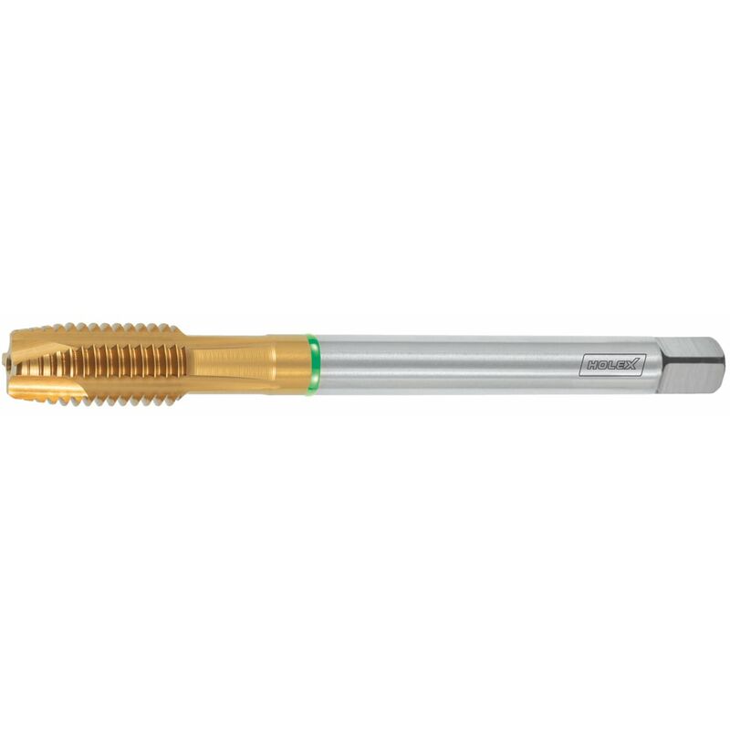 Con imbocco corretto. Guida posteriore con scanalature di lubrificazione, ma senza scanalature per trucioli. Maschio a filettare universale HOLEX Pro Tap. Esecuzione robusta progettata per un'ampia gamma di materiali. Materiale da taglio in HSS-E migliorato con rivestimento TiN a basso coefficiente di attrito. Classe di tolleranza: ISO 2 6H Dati tecnici Uni m/min idoneo Tipo di prodotto Maschi a filettare Acciaio < 1100 N/mm² m/min limitatamente adatto Rivestimento TiN Direzione di taglio destro Norma filettatura DIN 13 Colore collarino verde INOX < 900 N/mm² m/min idoneo Tipo di utensile di filettatura Maschi a macchina per i lavori dinamici Alluminio (a truciolo corto) m/min idoneo Olio idoneo Acciaio < 900 N/mm² m/min idoneo Alluminio > 10% Si m/min idoneo a umido max. idoneo Angolo di filetto Grad 60 Alluminio, plastiche m/min idoneo Utilizzo per tipo di foro fino a 3×D in caso di foro di passaggio Acciaio < 750 N/mm² m/min idoneo Forma dell'imbocco B Acciaio < 500 N/mm² m/min