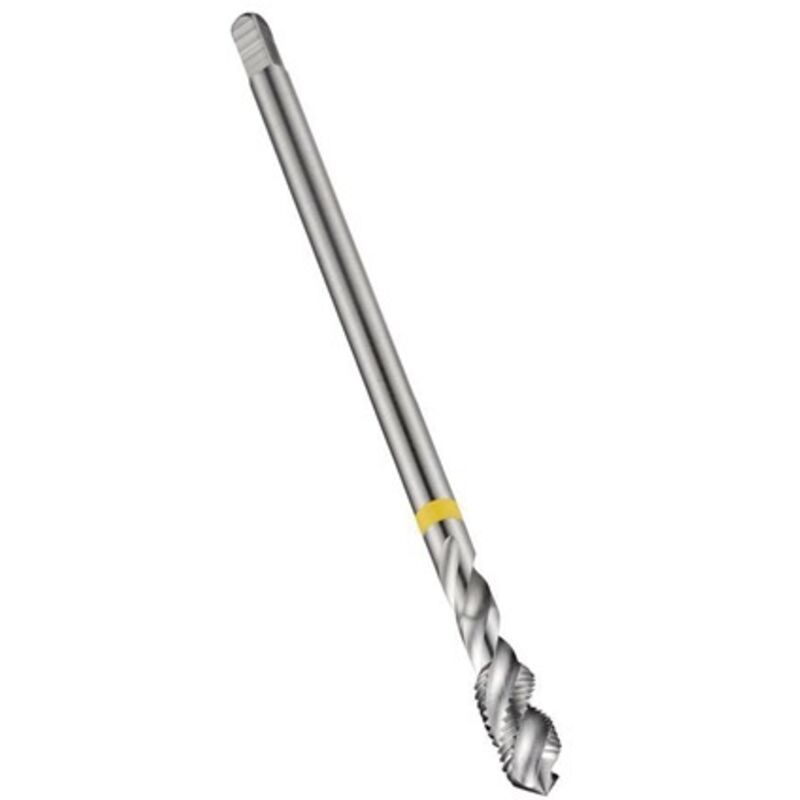 Trapano filettato Dormer MF Machine, scanalature scanalate a destra 40°, Anello giallo Shark HSS-E-PM DIN 374 Ulteriori caratteristiche tecniche: · Direzione di taglio: Destra · Forma: C · Versione: Taglia 2 - 3 marce, forma C · Lunghezza del filetto: 15mm · Albero-Ø: 9mm