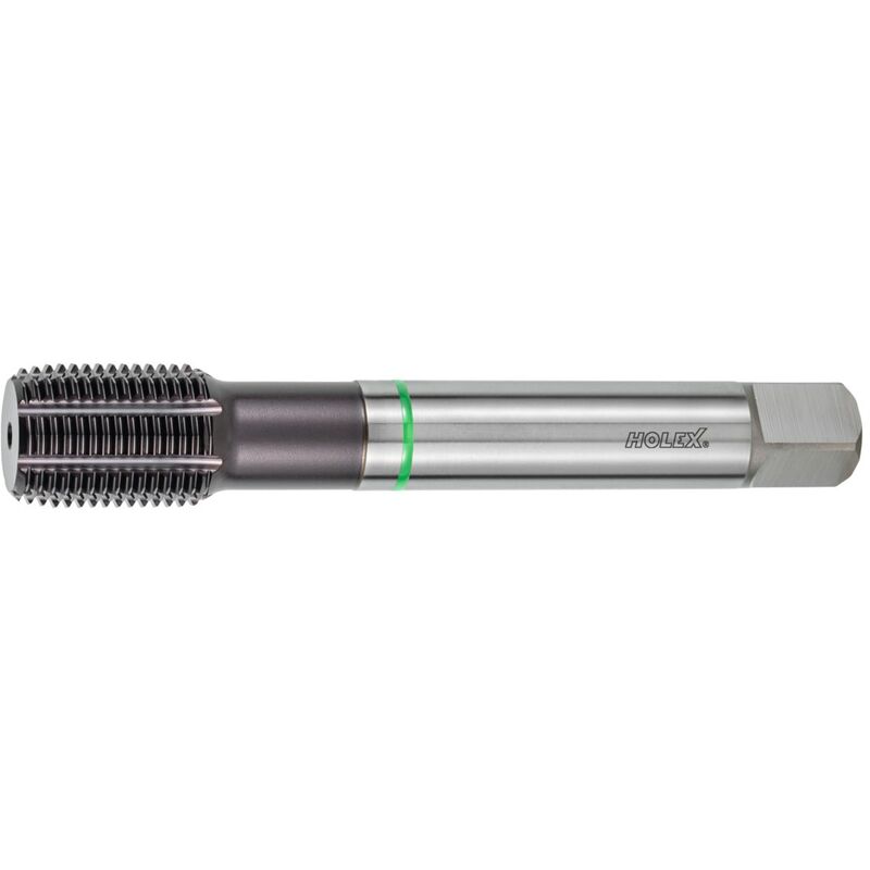 azione lubrificante ottimale anche per filettature più profonde. Potente rivestimento TiAlN a basso coefficiente d'attrito per buone durate. Uso: Per filettatura gas Whitworth cilindrica DIN-ISO 228/1 (non per raccordi con filetto a tenuta). Dati tecnici INOX < 900 N/mm² m/min limitatamente adatto CuZn m/min limitatamente adatto Acciaio < 750 N/mm² m/min idoneo Alluminio (a truciolo corto) m/min limitatamente adatto Acciaio < 500 N/mm² m/min idoneo Acciaio < 900 N/mm² m/min idoneo Uni m/min idoneo Olio idoneo a umido max. idoneo Angolo di filetto Grad 55 Codolo Codolo cilindrico con h9 Tipo di filettatura G Passaggio interno per LR no Materiale da taglio HSS E Norma DIN 2189 Colore collarino verde Forma dell'imbocco C Rivestimento TiAlN Direzione di taglio destro Classe di tolleranza ISO 228 X Tipo di prodotto Maschi a rullare Valore indicativo del ⌀ preforo, mm 9,25 Misura del filetto G1/8 Passo della filettatura, mm 0,907