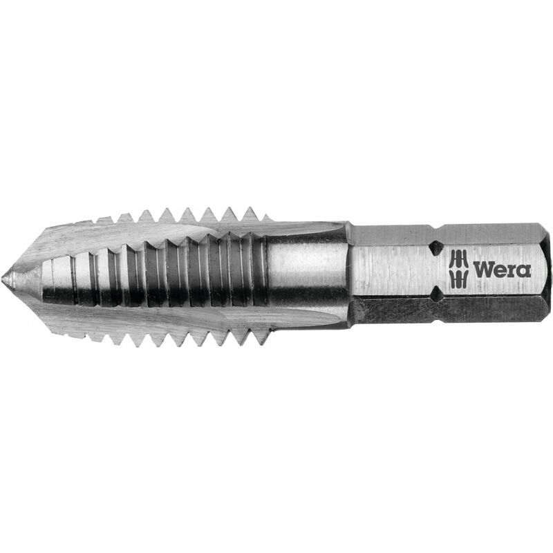 Codolo esagonale da 1/4 pollice a norma DIN 3126 C 6,3. Vantaggi: Cambio rapido e semplice tra punta e svasatore bit e bit per giraviti. Uso: Ideale per lavori di riparazione e montaggio in utilizzo mobile. Dati tecnici Materiale da taglio HSS Classe di tolleranza ISO 2 6H Angolo di filetto Grad 60 Tipo di filettatura M Tipo di prodotto Bit per maschi a filettare Utilizzo per tipo di foro fino a 1×D in caso di foro di passaggio Lunghezza complessiva, mm 40 Passo, mm 1,25 Codolo esagonale per bit C 6,3 Lunghezza codolo, mm 14 Per filettatura M8