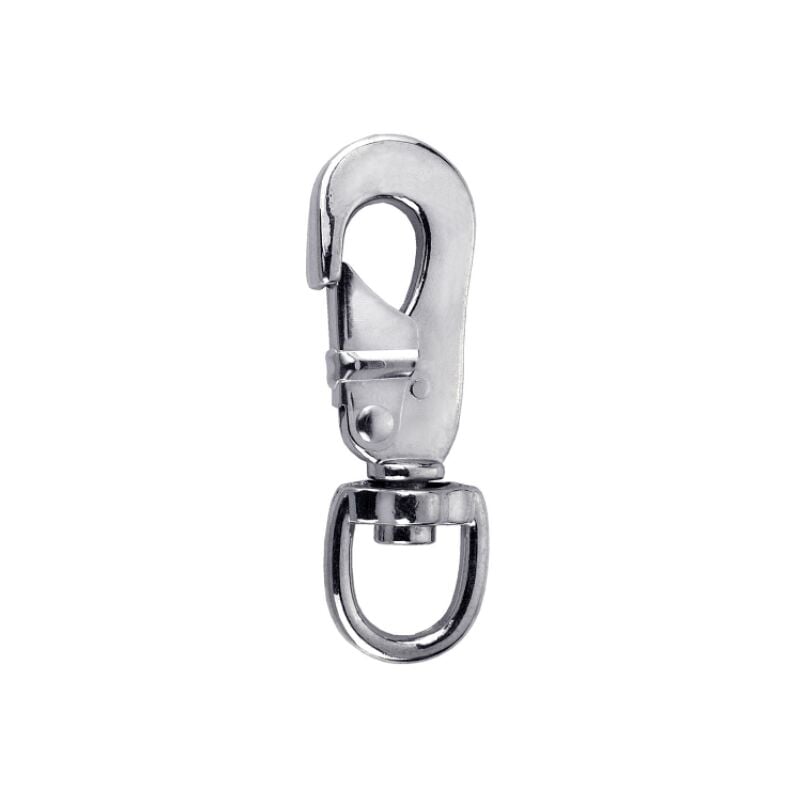 Moschettone con occhiolo Masidef 85mm max 30Kg - DY270511 Moschettone in acciaio nichelato con occhiolo -Lunghezza: 85 mm -Carico di lavoro max: 30 Kg