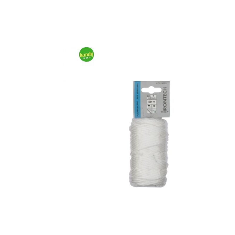 Treccia per veneziana in polipropilene, prodotta dal brand Masidef, bianca dal diametro di 3mm e 50 metri di lunghezza.