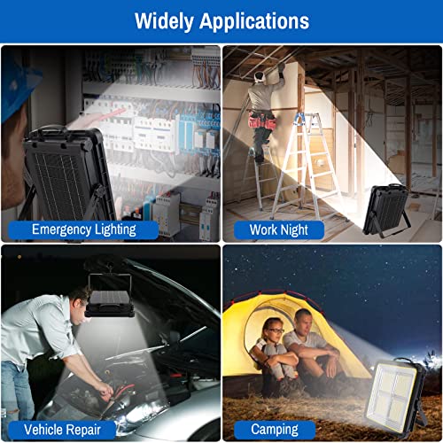 【4 MODALITÀ DI LUCE E LUCE REGOLABILE】: Il faro LED ricaricabile è dotato di 540 LEDs, insieme alla sua potenza di 160W, lo rende uno strumento molto utile in luoghi bui, sia all'interno che all'esterno, ideale per il campeggio o per i lavori notturni. Le sue 4 modalità di illuminazione, bianca, calda, bianca e calda, e il segnale SOS, gli conferiscono una versatilità difficile da eguagliare con altri prodotti simili. E premere a lungo l'interruttore per regolare l'intensità della luce.