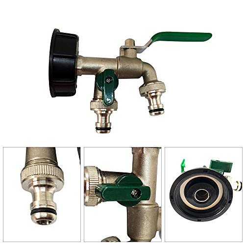 Maso - Adattatore con rubinetto in ottone per serbatoio IBC, a doppia uscita, S60 x 6, per giardino, con raccordo da 1,9 cm, per carburante o acqua