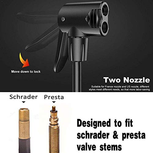★【Doppia testa valvola con blocco del pollice】La pompa di gonfiaggio per pneumatici per bicicletta ha 2 in 1 U S e F R specifiche kit di ugelli del gas, doppia testa della pompa aiuta a gonfiare tutti i tipi di biciclette;
