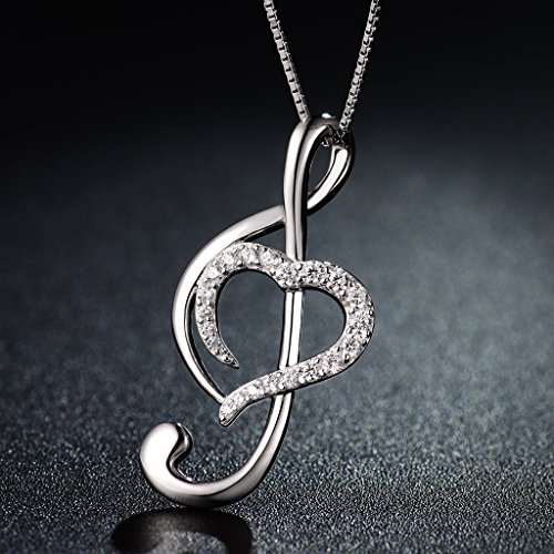 Masop, collana in argento Sterling con ciondolo a forma di chiave di Sol, con zirconia cubica 5A, lunghezza 45,7-50,8 cm, ottimo regalo per San Valentino
