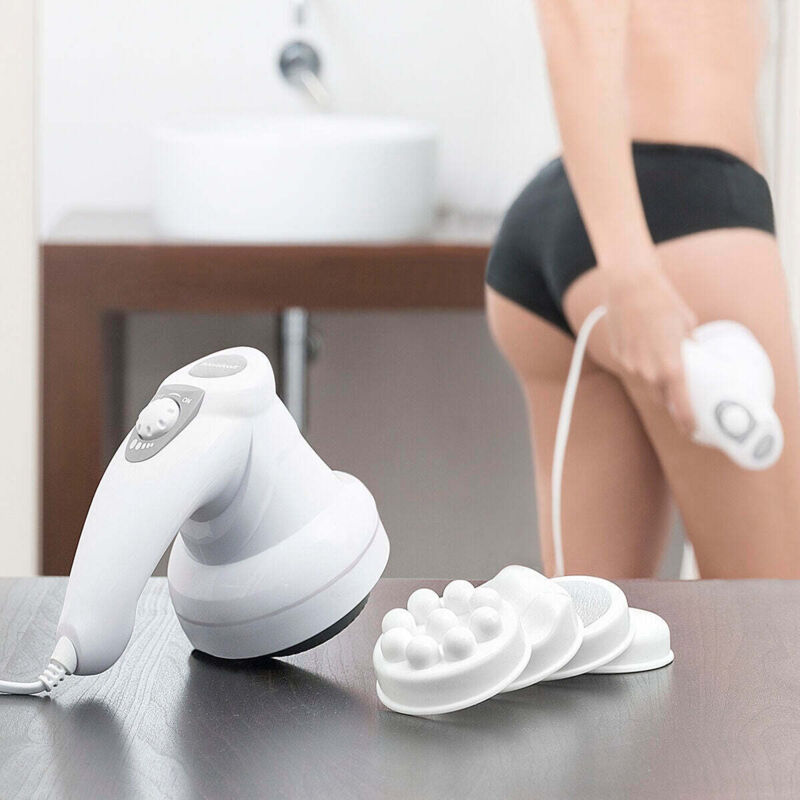 Multifunzione: massaggiatore, anticellulite e cura del piede. Teste intercambiabili. Pulsante di accensione/spegnimento e regolatore di intensità. Include accessori: rete anticellulite, massaggiante, drenante, esfoliante e protettiva per le zone pelose. Velocità di rotazione: fino a 3.500 giri/min. Massaggiatore 5 in 1.