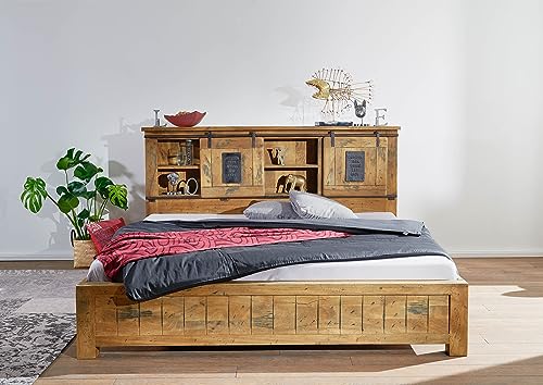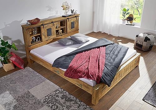 MASSIVMOEBEL24.DE RAILWAY #143 Letto matrimoniale in legno di mango - laccato/natur 180x200x85
