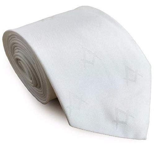 Massonic Masons Cravatta di seta con autostampa Compasso quadrato Bianco