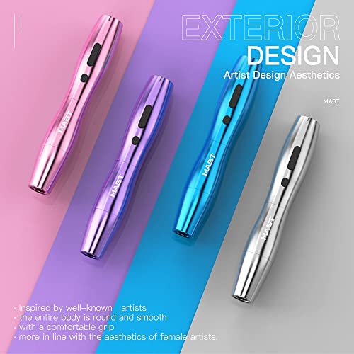 Mast P20 macchinetta tattoo Wireless Battery Rotary Tattoo Pen macchinetta tatuaggi Microblading Pen 2.5mm Stroke with 2pcs Batteries for Eyebrow Eyeliner Lip silver