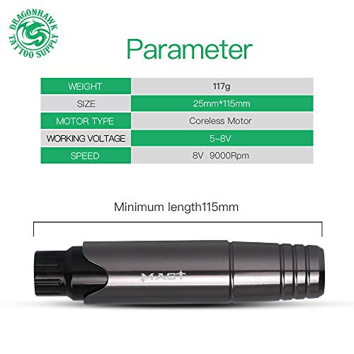 Mast P10 machine for Tattoo, Eyebrow, Eyeliner, Lips, Hairline and more. Designed for PMU artists as a very thin, lightweight and compact pen style machine. Easy to clean and chemical resistant. Carved by aircraft aluminium alloy enclosure