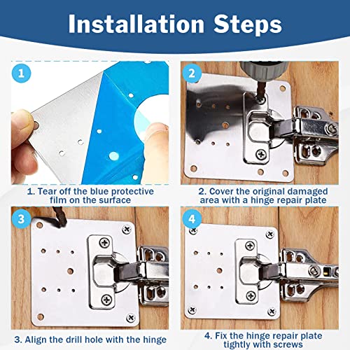 [Materiale Premium]: Pannello di riparazione della cerniera in acciaio inossidabile di alta qualità, antiruggine, bello e resistente. Design con bordo arrotondato, foro cerniera standard, compatibile con cerniere domestiche.