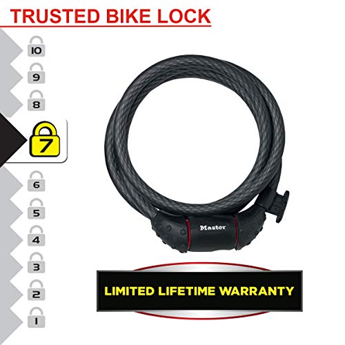 Master Lock 8121EURDPRO Lucchetto Bici, Chiavi, 1.8 m Cavo, Esterno, Staffa di Fissaggio, Ottimo per Proteggere Bicicletta, Skateboard, Passeggino, Falciatore, Attrezzature Sportive, Nero