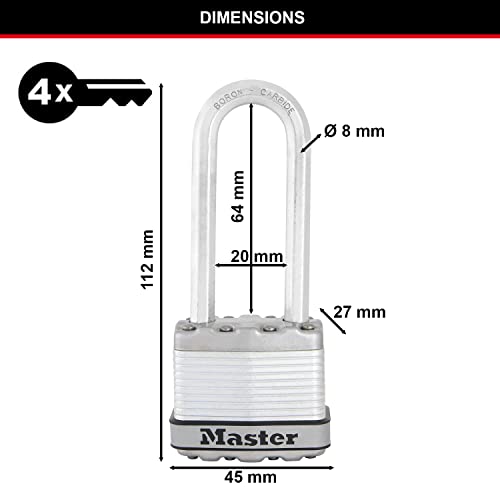 MASTER LOCK Lucchetto ad Alta Sicurezza [Chiave] [Acciaio Laminato] [Esterno] [Archetto XL] M1EURDLJ - Ideale per Portali, Garage, Sconto