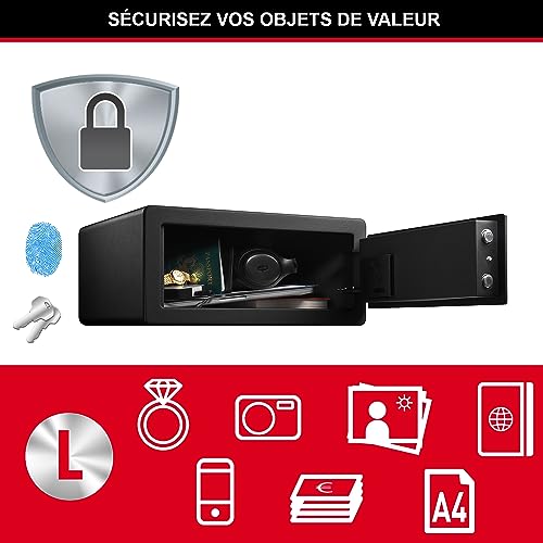 Master Lock LX110BEURHRO Cassaforte di sicurezza biometrica per oggetti di valore, 19,5 x 43 x 37 cm, nera, 25 L