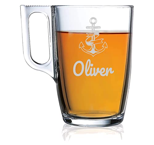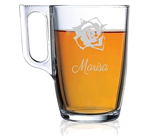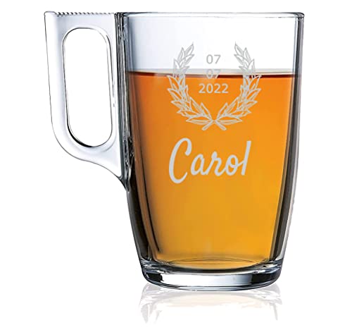 MASTERLASER3.0 Tazza da The Personalizzata Mug per Tè in Vetro Temperato Personalizzabile con Nome, Data e Caratteri Diversi. Migliore idea regalo