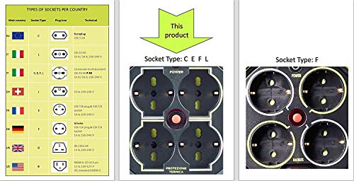 4 PRESE multistandard schuko + bipasso + EU (C,E,F,L) e SPINA italiana da 16A;