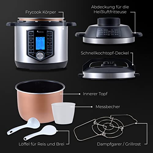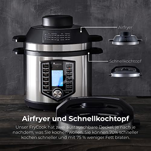 MasterPro FryCook | Friggitrice Senza Olio | Friggitrice ad Aria e Pentola a Pressione da 1500W e 6L | Programmabile con 44 Funzioni Automatiche | 12 Programmi di Cottura Diversi in 1