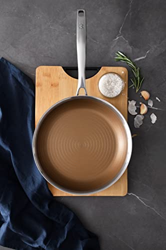 TRIPLO STRATO: questa padella incorpora una tecnologia mult strato che combina acciaio inossidabile e un rivestimento antiaderente, che le conferisce una grande resistenza all'usura e contribuisce a mantenere il cibo non si attacca alla superficie.