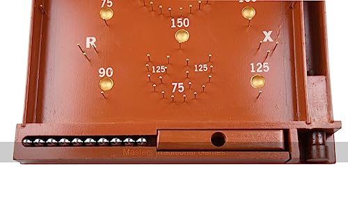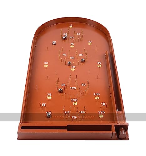 Masters Classic Pin Bagatelle Game - Full Size Premium Quality Wooden Bagatelle with Spring Plunger And Brass Pins - Traditional tabletop Game