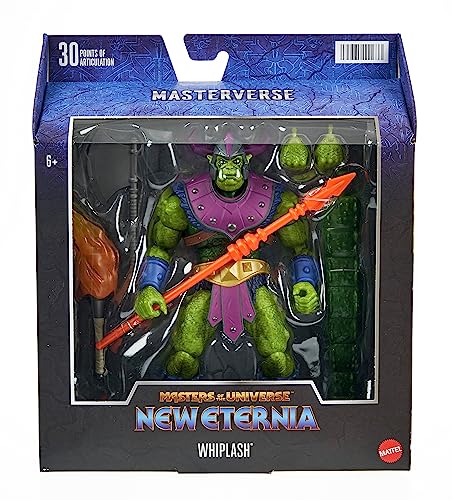 Masters of the Universe Masterverse - Personaggio Whiplash New Eternia, action figure deluxe da 21 cm con accessori da combattimento e 30 punti di articolazione, giocattolo per bambini, 6+ anni, HLB68