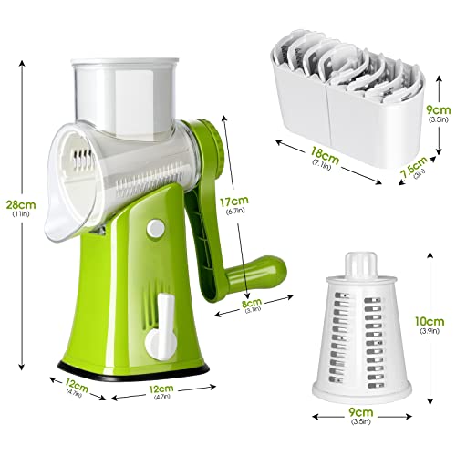 MASTERTOP Grattugia Rotativa per Verdure, Affettatrice Manuale con Lame Intercambiabili in Acciaio Inox 5 in 1, Grattugia Rotonda da Cucina per Insalata, Frutta e Pizza