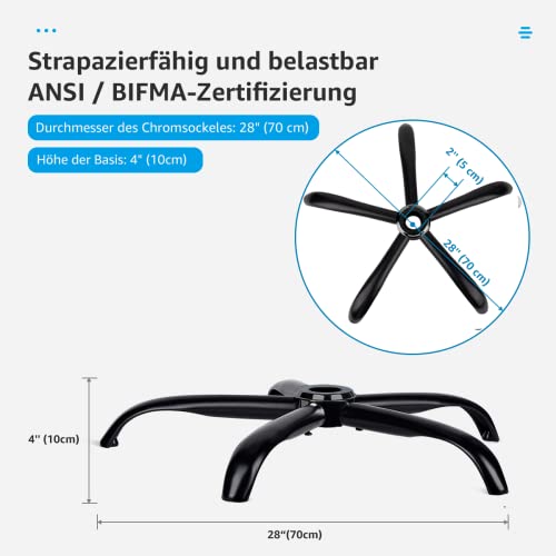 Mastery Mart - Base per sedia da ufficio, accessorio di ricambio per piede, base a cinque stelle, base a cinque stelle, piedini per sedia da ufficio, sedia girevole in nero, 70 cm