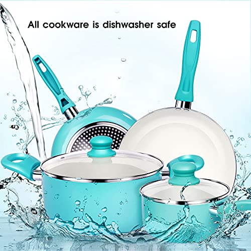 Masthome Padelle Antiaderenti in Alluminio, Set Pentole da Cucina da 16 Pezzi, Set Pentole Induzione con Coperchio Include Padella, Padella per Zuppa, Padella per il Latte - Blu