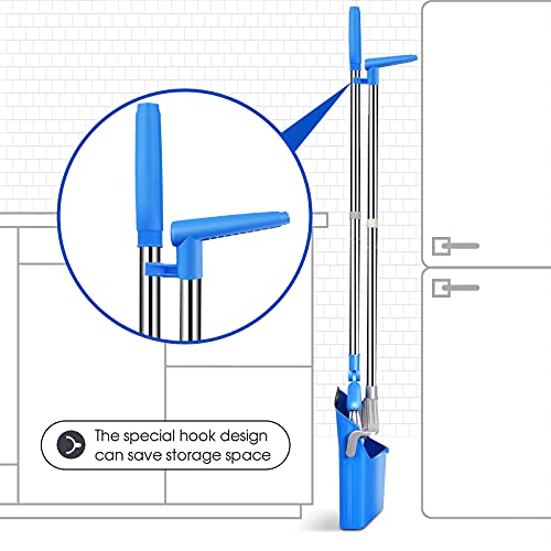 Masthome Set di Paletta e Spazzola con Manico Lungo, Set Scopa e Paletta con Scopa a Girevole a 180 Gradi, Paletta e Scopa per Esterni, Interni, Giardino, Lobby Spazzare, Blu