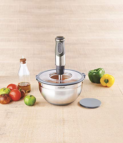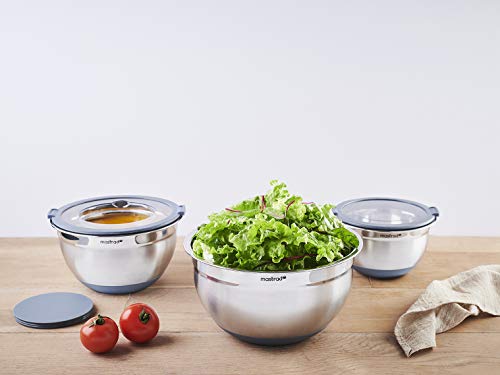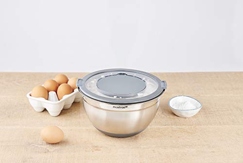 Mastrad - Ciotola in acciaio inox, ø 20 cm, con coperchio trasparente, contenitore graduato e base antiscivolo in silicone, ideale per la preparazione, il servizio e la conservazione degli alimenti