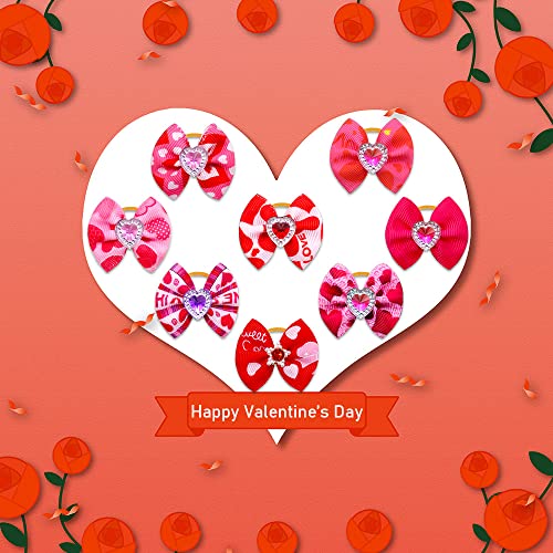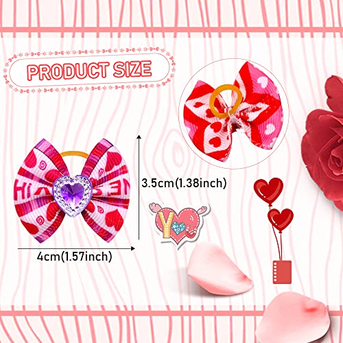 Masue Pets - Fiocchi per cani di San Valentino, con elastici in gomma, per cani e cuccioli, 20 paia, colore: Rosa