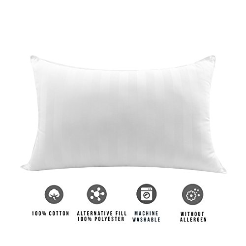 Masvis, cuscino da letto in 100% cotone ipoallergenico e resistente agli acari della polvere, colore bianco, Poliestere, Medium, 45 x 70 cm