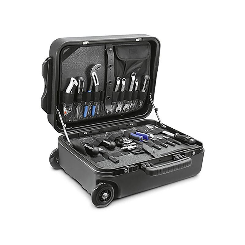 Custodia per utensili mobili Caddy Allround, 185 PC. L'officina mobile nella custodia stabile e pratica. Custodia per utensili a doppio parete in plastica HDPE. Con telaio in alluminio indurito e torsione. Spazio per pavimenti con divisioni regolabili. 2 strumenti larghi con spine e borse. Con bordi per paraurti come copertina e elemento di design. Con rulli con sfere e maniglie telescopiche pratiche. Caso del caso: 485x190x370 mm. Compresa la creazione convertibile di qualità di qualità Z90 in 6,3 mm (1/4) e 12,5 mm (1/2) con 6,3 mm (1/4) STCCHESTELESTENTENT in: 6, 7, 8, 9, 10, 11, 13 mm con 12,5 mm (1/2) inserti a chiave di socket in: 10, 11, 12, 13, 14, 15, 16, 17, 18, 19, 20, 22, 24, 27, 30, 32 mm realizzati in acciaio cromatico-vanadio secondo a Din 3124 / ISO 2725-1 ha reso il quarto Cant interno secondo Din 3120-C6.3, 3120-C12.5 / ISO 1174 Tutti gli inserti a chiave di presa con rivestimento super cromato per una finitura superficiale più fine e una forte resistenza contro