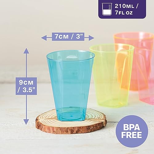 MATANA - 80 Bicchieri in Plastica Rigidi, (Neon, 210ml) - Succhi, Limonata, Cocktail, Punch e Altro - Compleanni, Feste per Bambini, Matrimoni, Natale, Barbecue - Resistenti e Riutilizzabili
