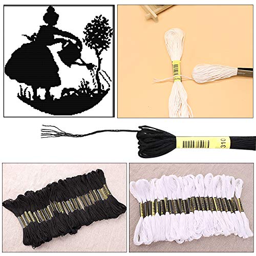 Set di 48 matassine per punto croce: 24 matasse nere e 24 matassine bianche, per soddisfare il vostro progetto a punto croce.