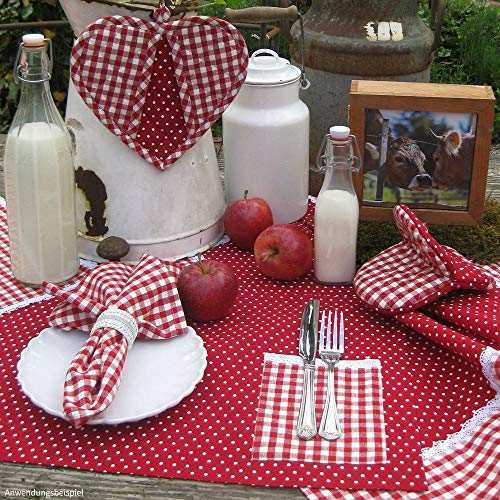 Matches21 - Grembiule da cucina in stile rustico di alta qualità con motivo a quadri, con puntini e pizzo, 1 pezzo, colore: Rosso