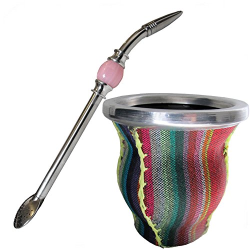 Mate Vetro con Aguayo tessile per Yerba Mate con Bombilla