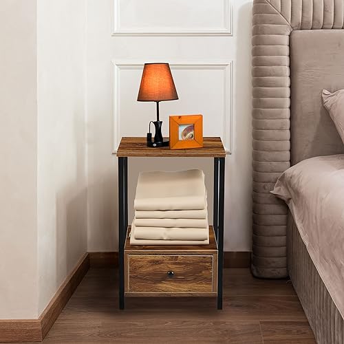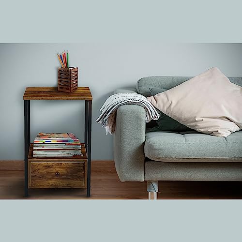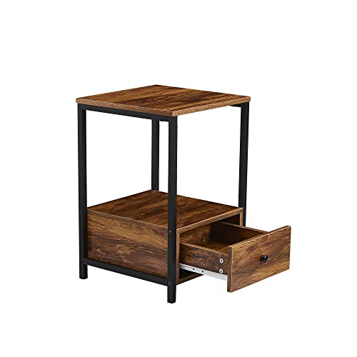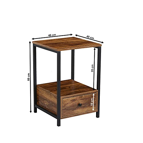 MateDesk - Comodini camera da letto, tavolino laterale da divano, Tavolino da Salotto, Marrone Vintage con struttura in metallo nero. Dimensioni: 40 x 40 x 60 cm
