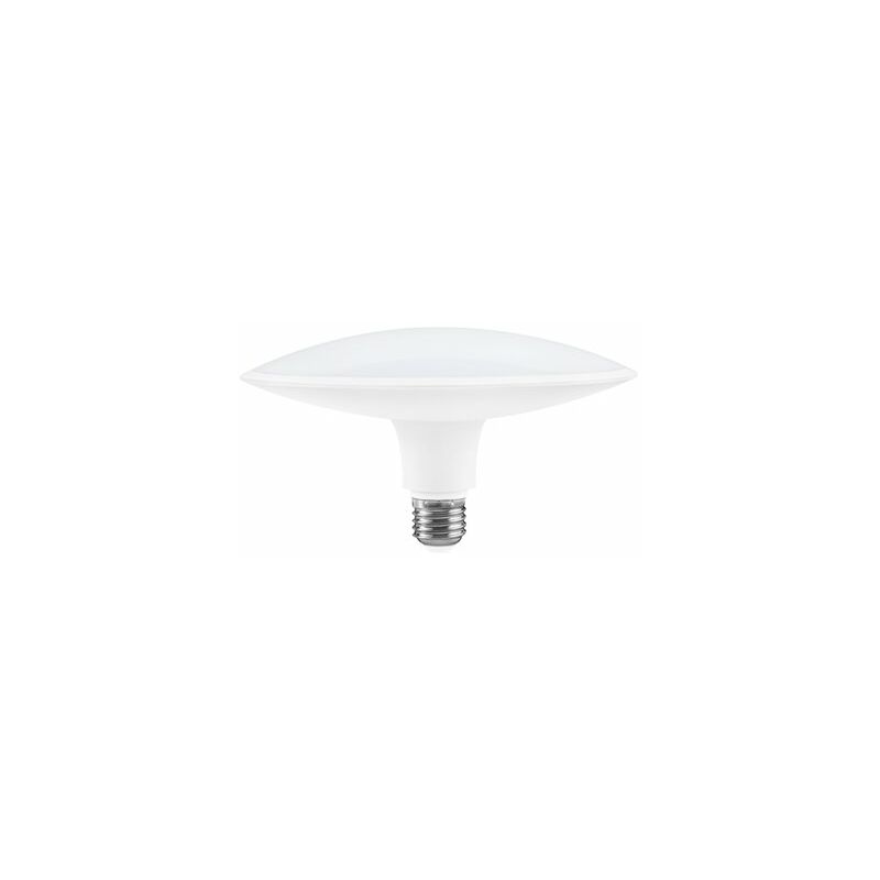 Lampadina LED MATEL con classificazione F, risparmia fino al 90% di energia. Design tipo UFO, ideale per l'illuminazione a soffitto. Installazione diretta, senza trasformatore aggiuntivo richiesto. Accensione elettronica istantanea e prestazioni elevate. Angolo di apertura della luce non inferiore a 120°. Corpo in PC bianco con interno in alluminio e copertura opaca. Lampadina LED MATEL con temperatura colore 6400K (fredda). Vita utile media fino a 30.000 ore con due anni di garanzia. li>Ideale per illuminazione in più ambienti.