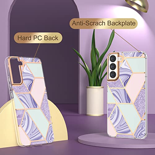 MATEPROX Custodia Marmo Compatibile con Samsung Galaxy S22 Plus/S22+ Elegante Brillantini Marmo Posteriore Rigida Protettiva Covers per Galaxy S22 Plus/S22+-Marmo viola